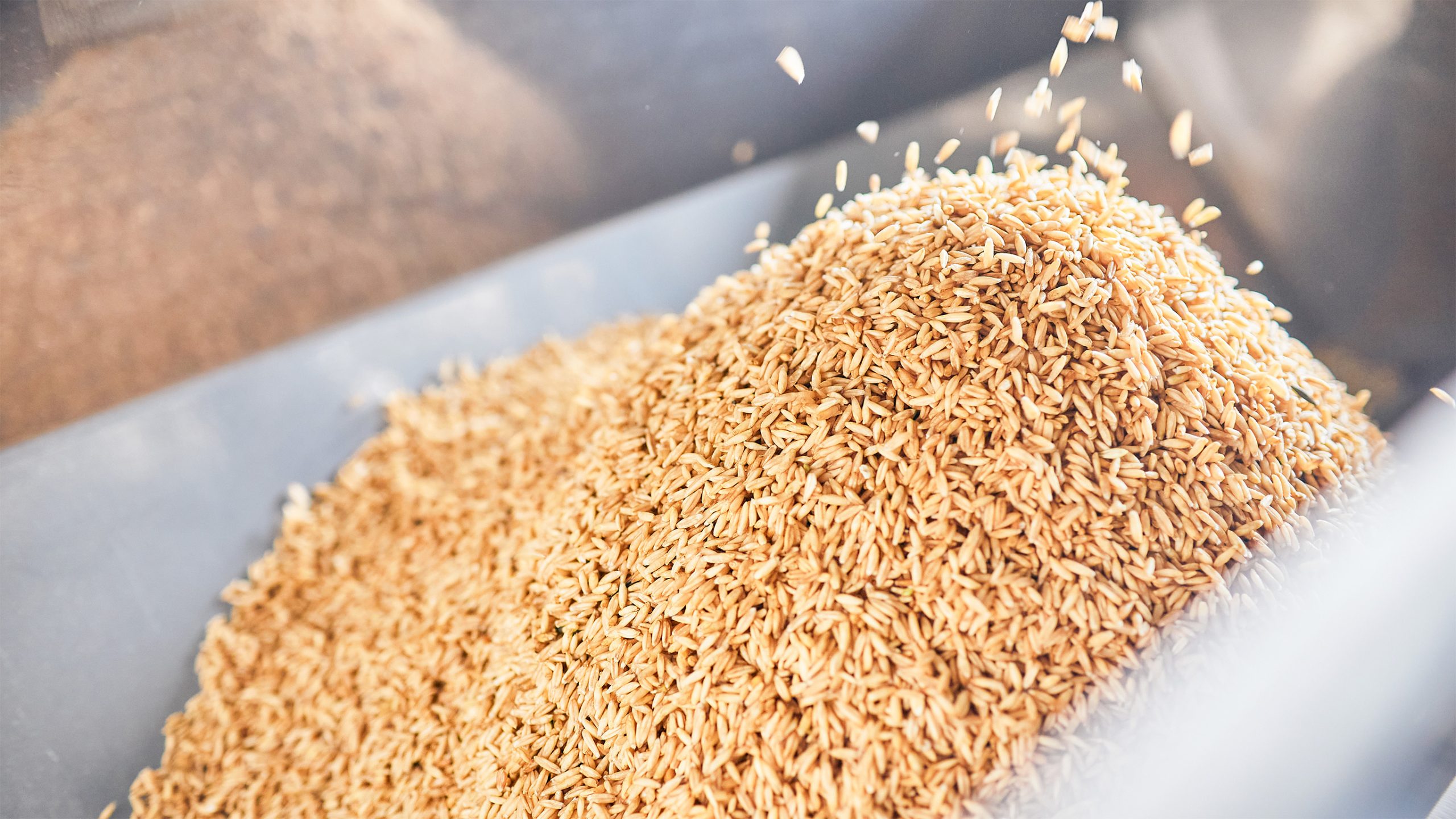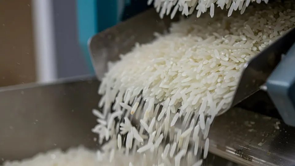 Gạo được kiểm tra để loại bỏ tạp chất, đảm bảo độ sạch và an toàn.